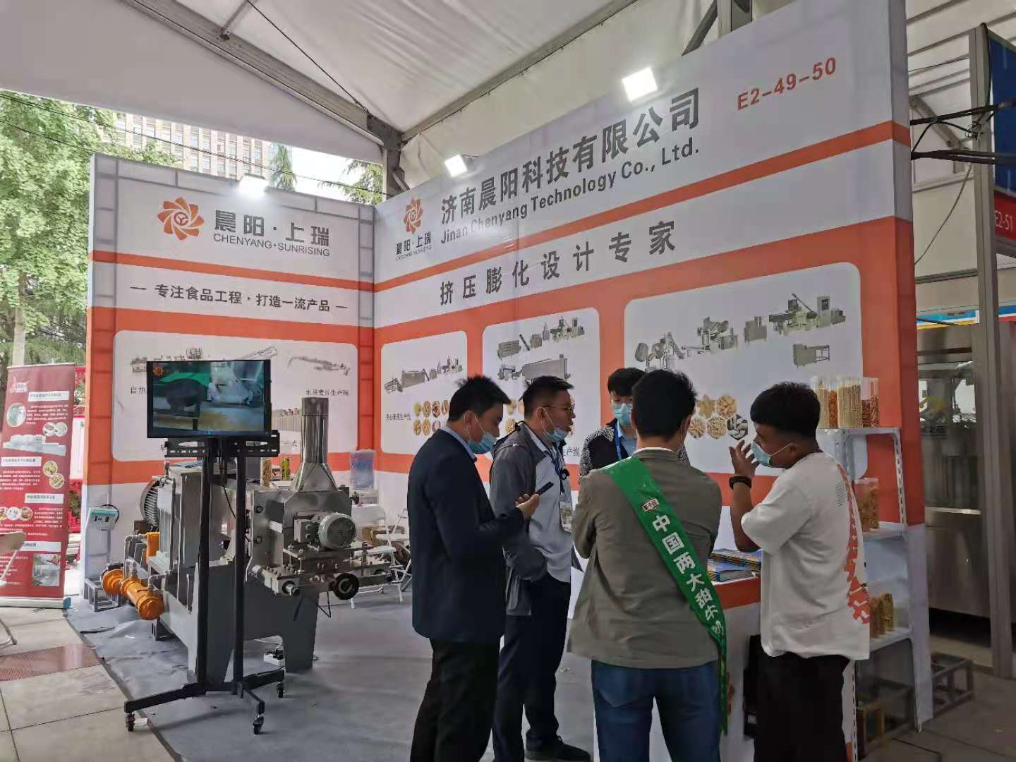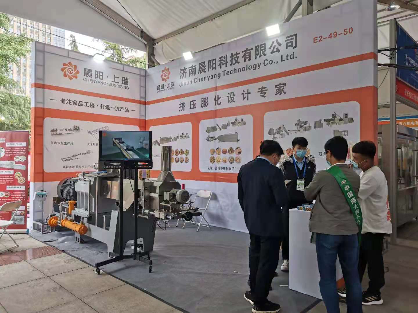 濟南晨陽科技專注于擠壓膨化行業,我們的設備有 夾心米果設備 自加熱米飯設備 膨化食品設備 寵物飼料設備 營養大米設備 水果燕麥片生產線 米果膨化機 營養米粉設備 變性淀粉生產線 可食用大米吸管設備 寵物咬膠設備 嬰兒磨牙棒機器設備,展會空間有限 只能做部分展示,想了解更多,歡迎各位來我司參觀!!!