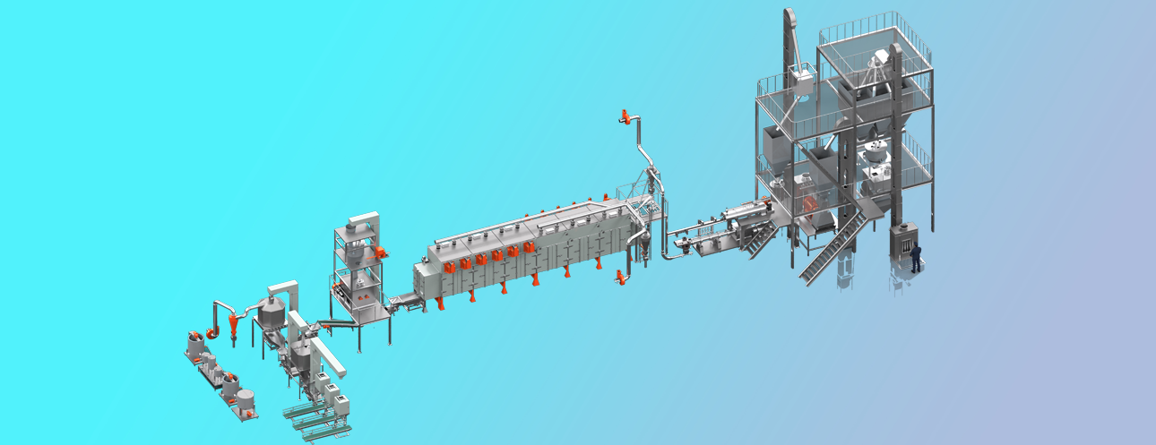 技術方面寵物食品生產線設計自動配料混合粉碎系統、雙螺桿擠壓膨化機、環流帶式干燥機,真空噴涂機,運行設有自動控制中心。整套設備全部自動運行。降低勞工成本投入,低成本,高產能。