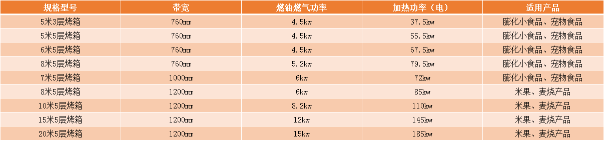 產品:頂部加熱使用在烘烤膨化食品物料表面含油量較高,滴油的產品,頂部加熱更安全,易清潔;外部加熱烤箱烘干產品多樣性,使用能耗更低。