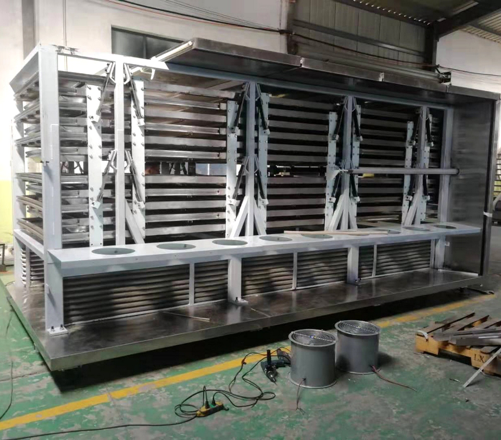 干燥時物料從設備頂部的加料口進入,在振動和自身重力的作用下,物料從上層自下層往復移動,后從底層的出料口排出。熱空氣從底層進入,穿過帶孔床層往動,同時與床層上的物料進行充分的傳熱和傳質,后通過頂部的排濕口排出。